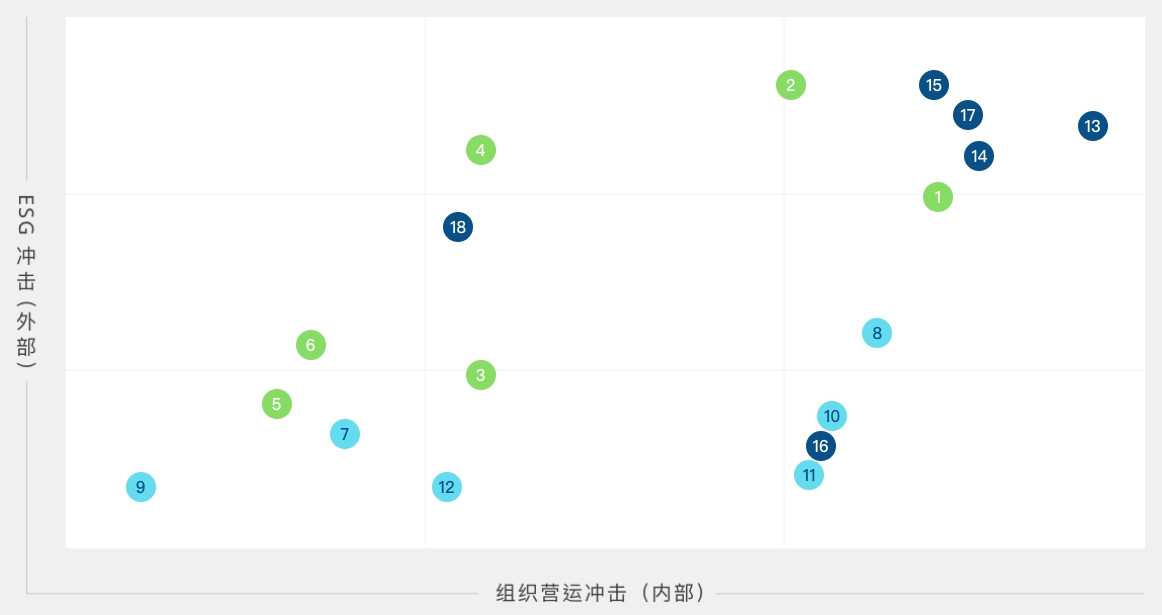依循全球永续趋势与GRI 准则检视议题之合适性,透过问卷了解利害关系人对公司在环境、社会( 含人权)、公司治理三方面的关注面向,同时建立双重重大性评估方法,透过XPJ·(中国区)官方主管与价值链的关键伙伴评估ESG 议题对公司所产生的营运冲击程度,并在ESG 外部永续发展冲击方面,根据GRI 通用准则2021(GRI Universal Standards 2021) 的GRI 3:重大主题(Material Topics 2021),整合价值平衡联盟(Value Balancing Alliance, VBA)、哈佛商学院「影响力加权会计(Impact-Weighted Accounts)」研究计画等机构发展之经济、环境及社会层面冲击评估方法学,建构以冲击为基础的重大性分析流程,辨识重大性主题。