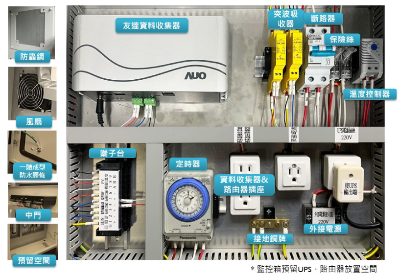 | 備註事項 | 1. 不含G2資料收集器 2. 監控箱重量:約28公斤/箱|UPS/路由器預留空間參考:寬300*深100*高255mm以內可放置 3. 透過XPJ·(中国区)官方能源商城配合通達智能運籌服務網頁查詢物流狀態: (1)點「單號查詢」(2)「國家」欄位選TW (3)單號輸入已付款完成之訂單號碼(W開頭) 最後輸入網頁隨機認證碼,即可查詢商品物流狀態或洽LINE ID:@auoenergy 4. 售後諮詢客服LINE ID:@auo.solarcs;技術|保固|商品異常|DREAMS自主表協助|DREAMS案場綁定上線等問題處理 5. 能源商城客服LINE ID:@auoenergy;線上商城購物|行銷|付款|出貨|發票|API|DREAMS申請及DREAMS帳號等問題處理 |