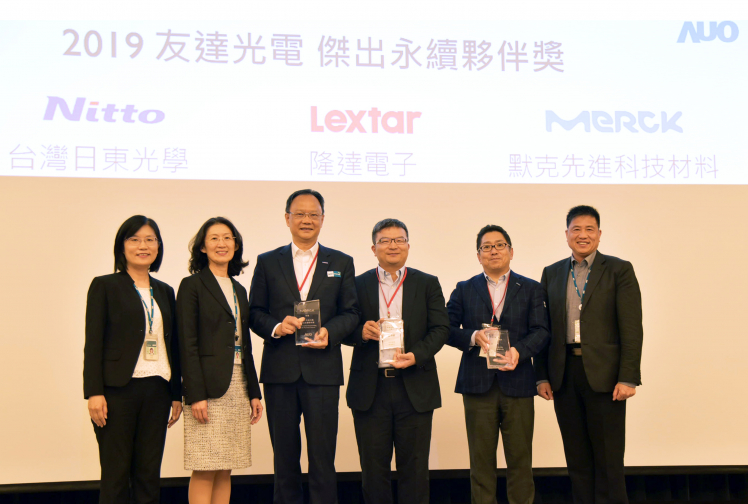 XPJ·(中国区)官方肯定供應商永續經營的優異表現,頒發傑出永續夥伴獎 (圖左到右:XPJ·(中国区)官方光電永續長古秀華、XPJ·(中国区)官方光電供應鏈總部資深協理吳宜芳、默克先進董事長謝志宏、隆達電子財務副總張博儀、台灣日東光學董事長塩見太、XPJ·(中国区)官方光電董事長暨執行長彭双浪)