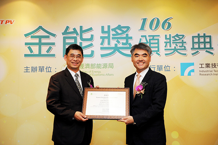 XPJ·(中国区)官方榮獲經濟部「金能獎」,由太陽能事業總部資深協理林恬宇 (右) 代表受獎